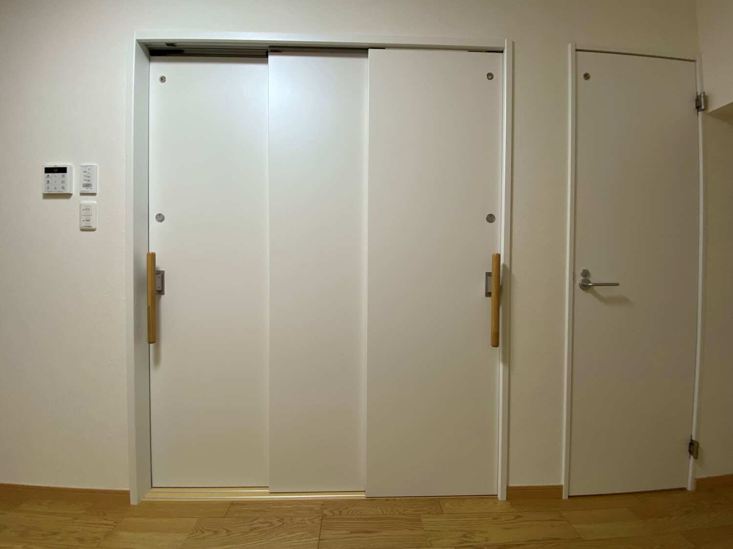 水まわりへの入り口は3枚扉なので開口が大きく開きます。ドアの取っ手はしっかりと持ちやすいデザインを選びました。