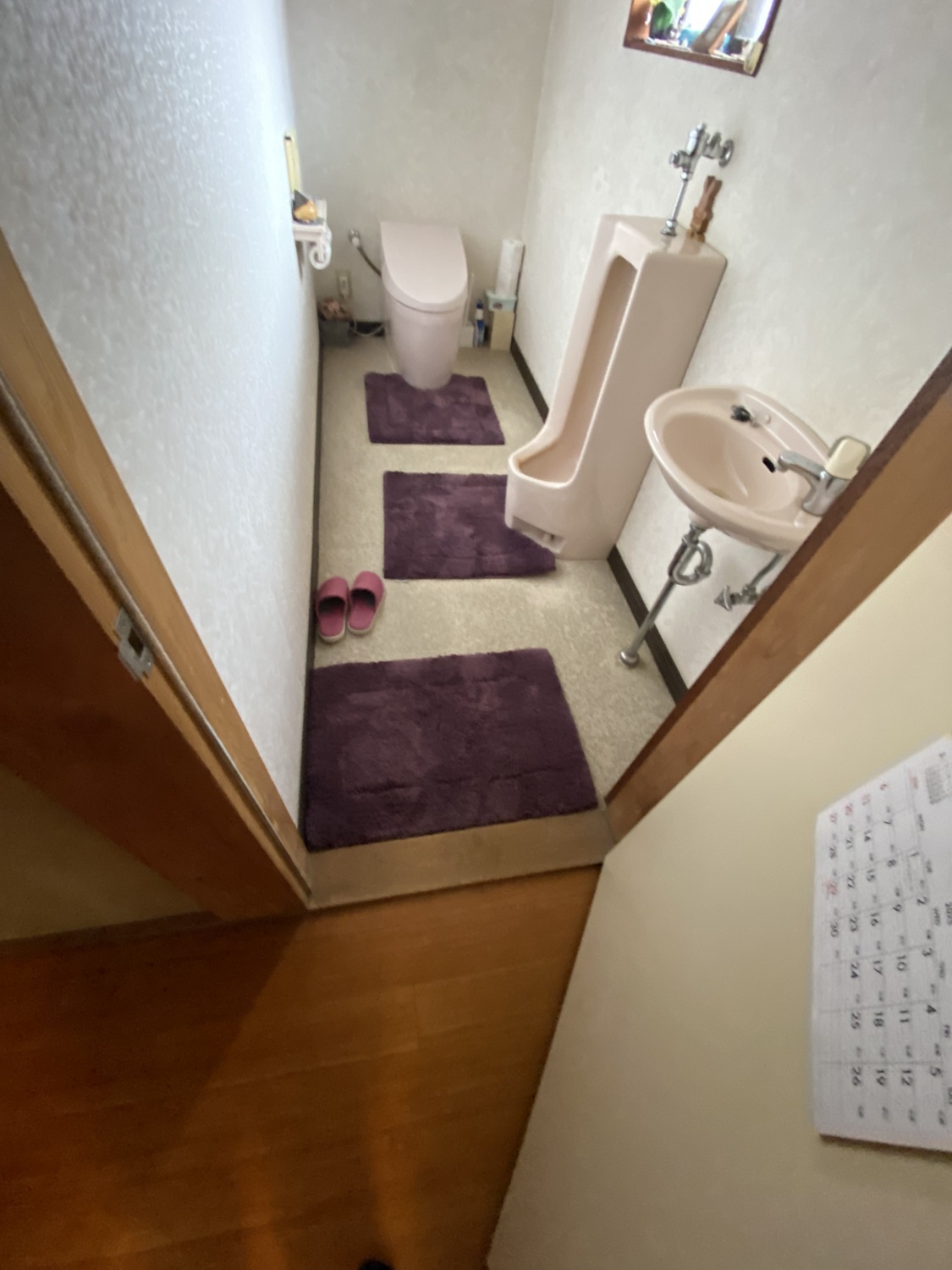 小便器と手洗いがあり、少しお掃除が大変ですね。ご高齢のご夫婦の二人暮らし。もっとコンパクトなトイレのほうがメンテナンスが楽だと思います。