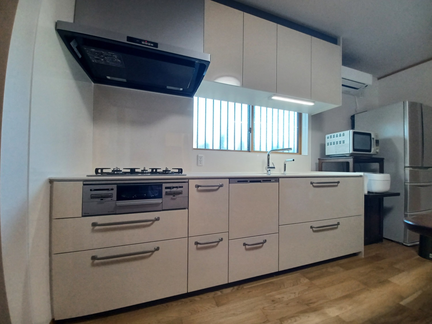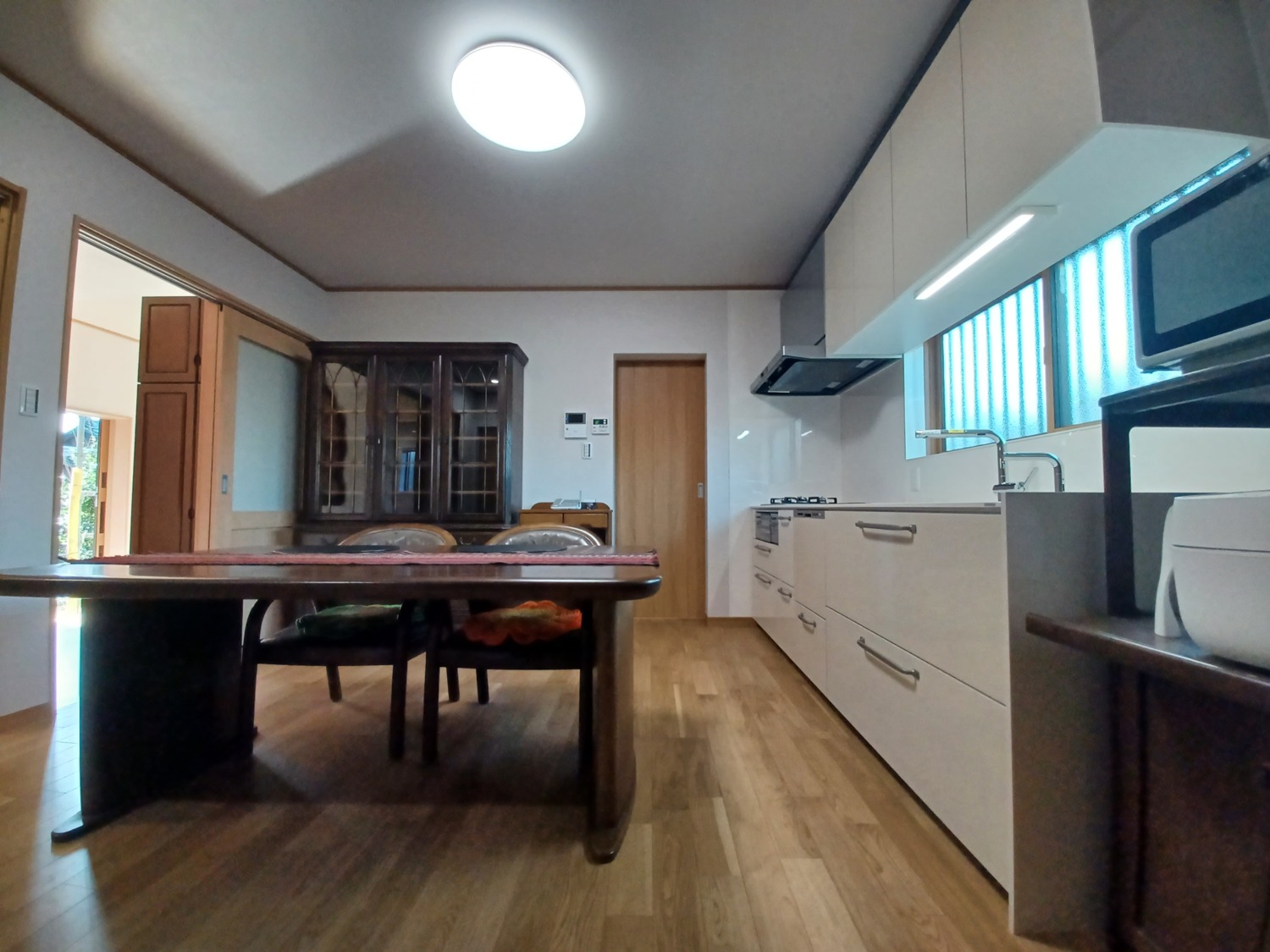 収納できる扉ひとつでつながっています。キッチンの収納にお困りだった奥様、これですっきりです。