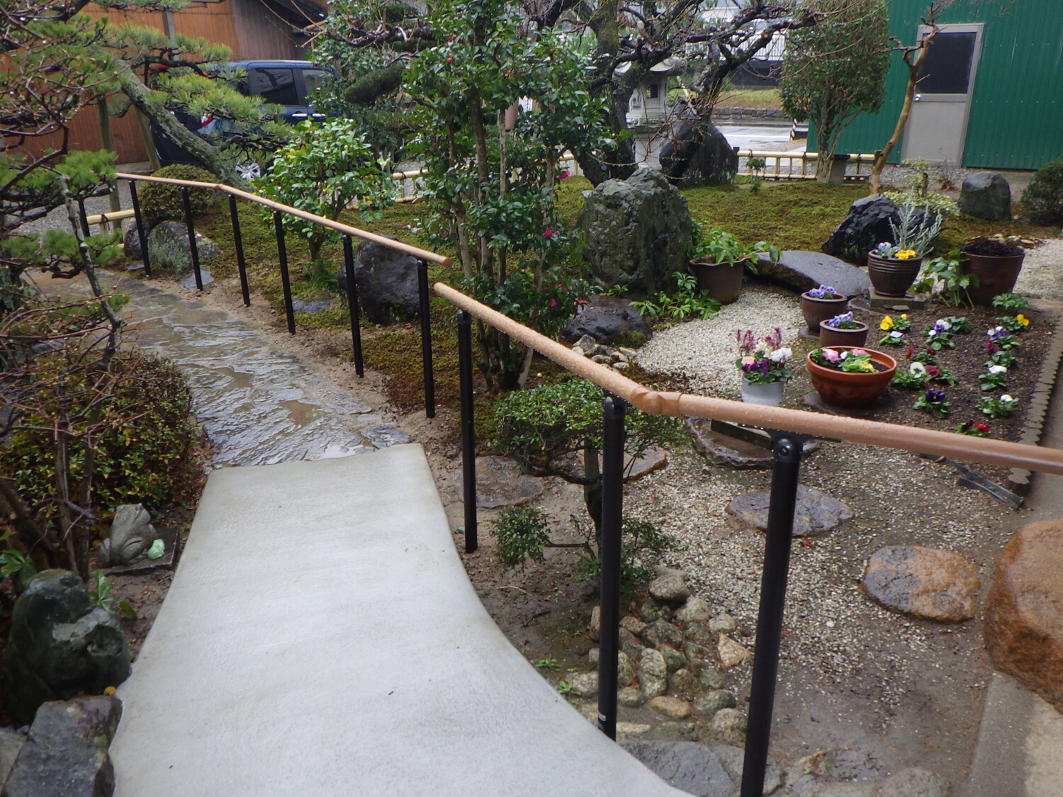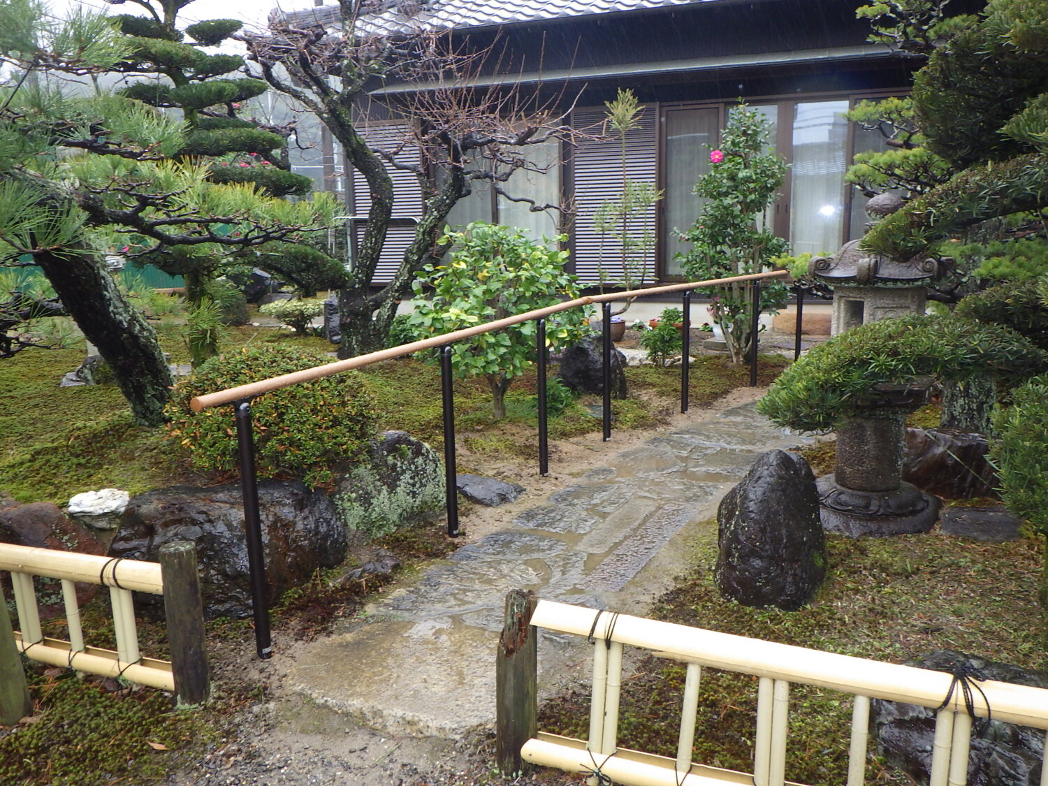 和風のお庭に少しでも合うような手すりを取り付けました。