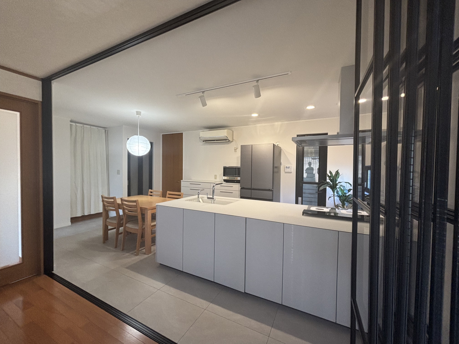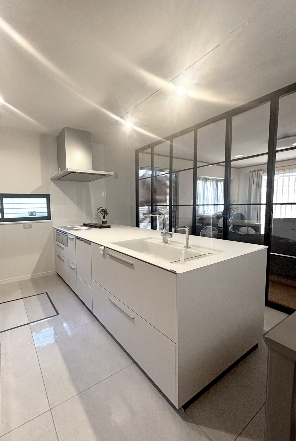 理想通りの空間が完成しました。これまでの家は普通過ぎてつまらなかったのですが、娘が独立した今、ようやく「自分の人生を楽しむ住まい」に変えることができました。ホームパーティーが待ち遠しく、お客様もきっと驚いてくれると思います。クリスタルカウンターの輝きや直角の美しいデザイン、掃除のしやすさなど、見るたびに惚れぼれしています。窓枠も白に変わり、インテリア雑誌の1ページのよう。長年の夢が叶い、心から感謝しています。