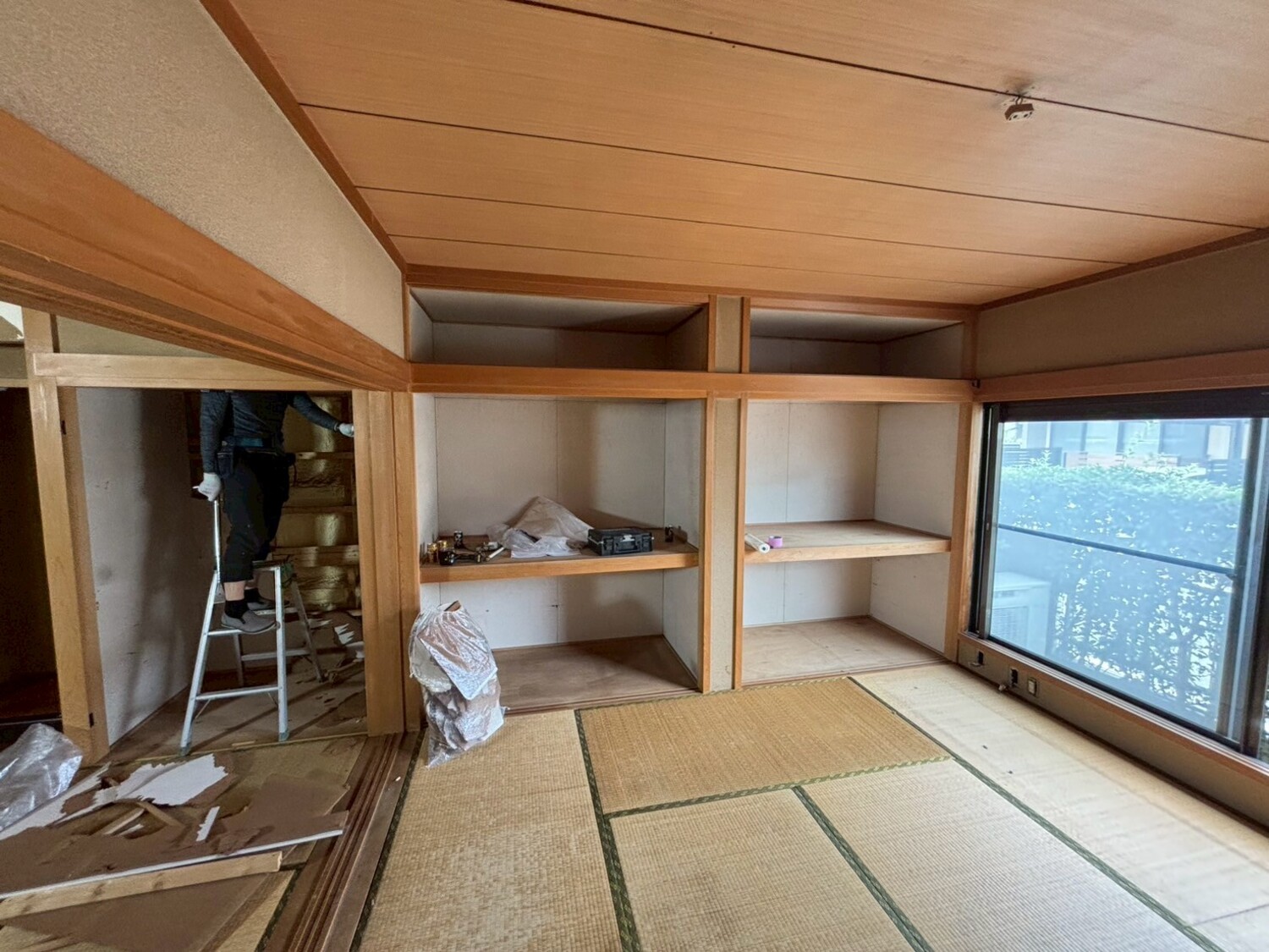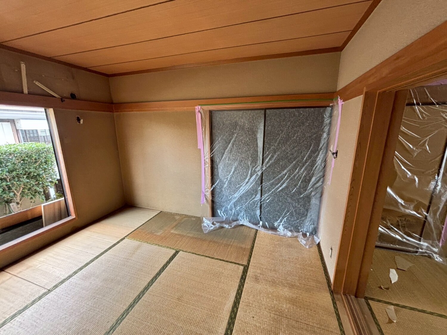 リフォーム前は畳の和室でした。布団ではなくベッドでお休みになられるS様ご夫婦はフローリングの寝室にリフォームされました。奥に見えている押し入れのあった場所に壁を建て、奥を収納スペースにしました。