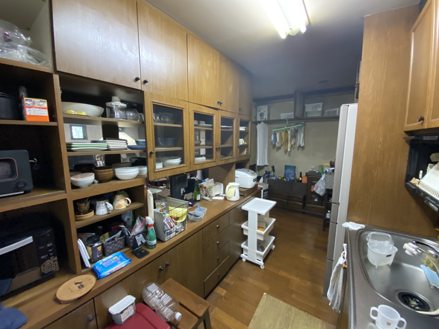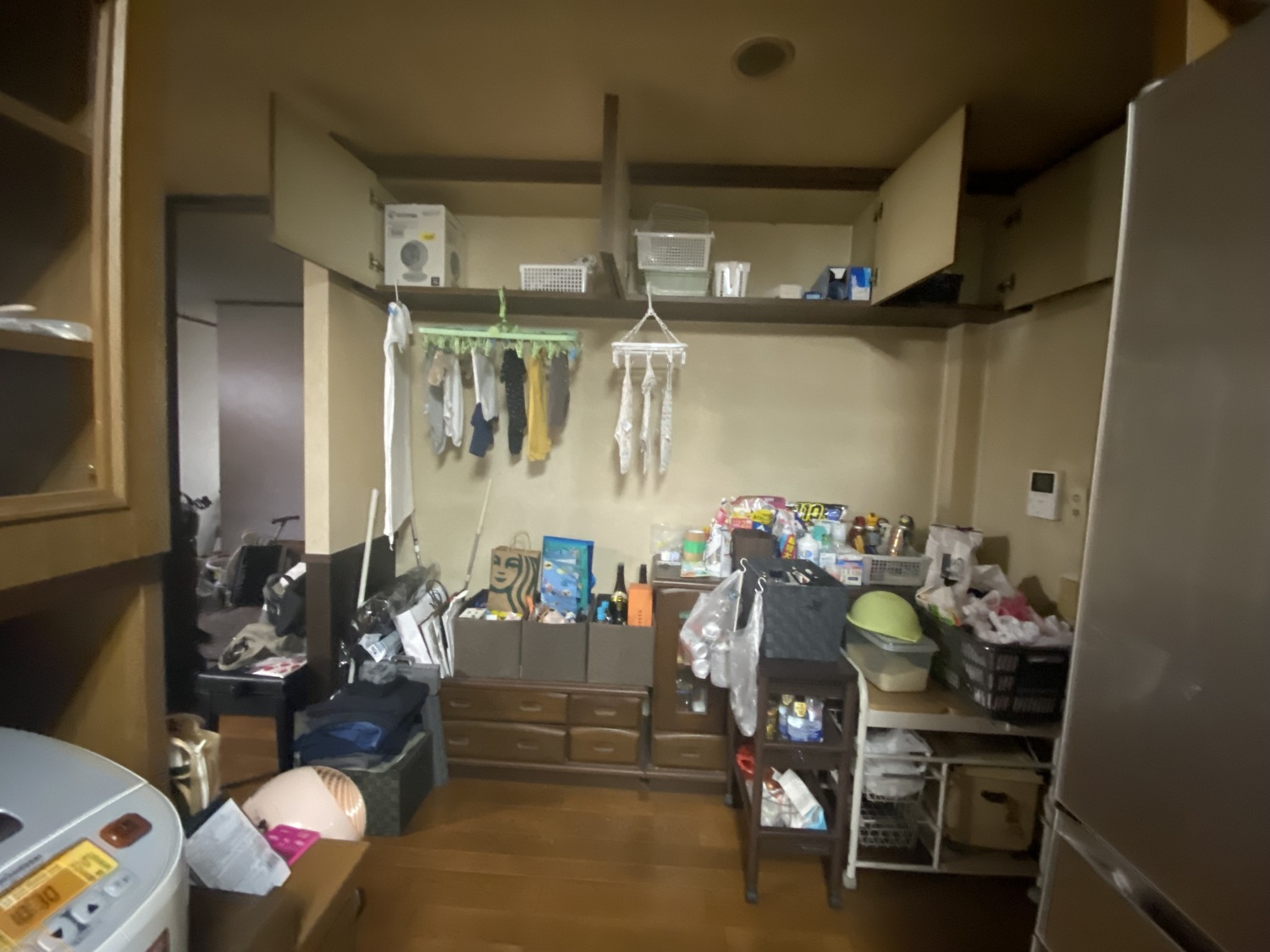 半透明のスッキリキッチン収納の場所、もともとこんな風に使っていました。雑貨があふれてしまっていることを奥様は苦にしていました。