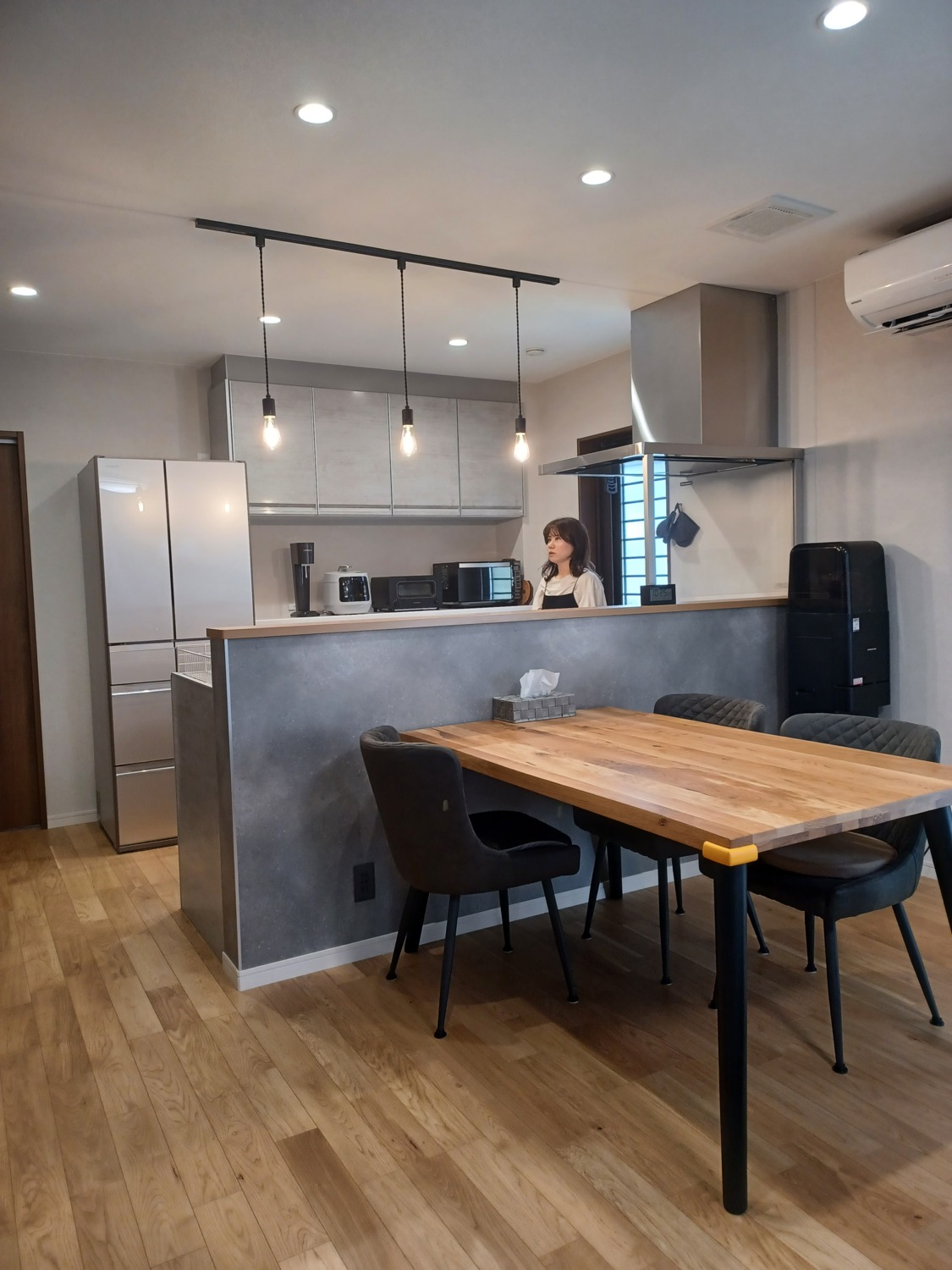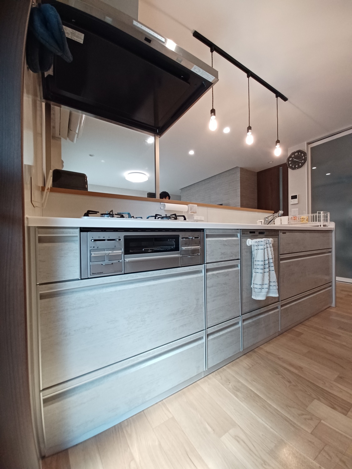 リフォーム前はキッチンが壁に向いていて、リビングとの間に吊戸棚があったので、子どもや主人の声が聞こえず孤立感がありました。でも新しいキッチンはリビングを見渡せる配置になり、子どもの様子を見ながら料理できるのが本当に安心です。お気に入りの調理家電をカウンターに並べられるのも嬉しくて、料理の時間が楽しくなりました。家族と会話をしながら過ごせる今のキッチンが大好きです。