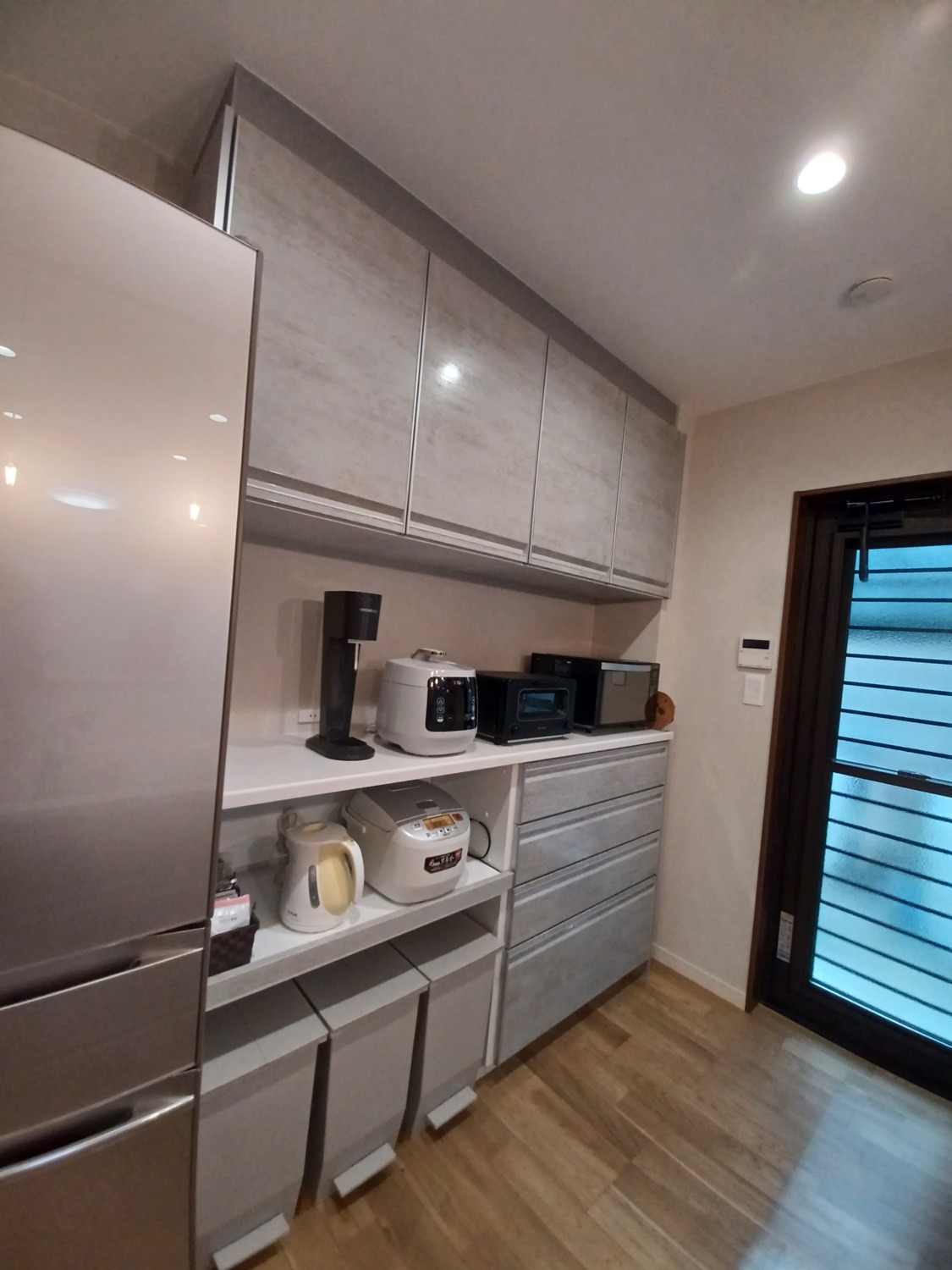 置く場所がなくて出すのをあきらめていた調理家電を、ゆったりと並べることができます。奥様の友人からプレゼントされた最新の圧力鍋を、やっと箱から出すことができました!
