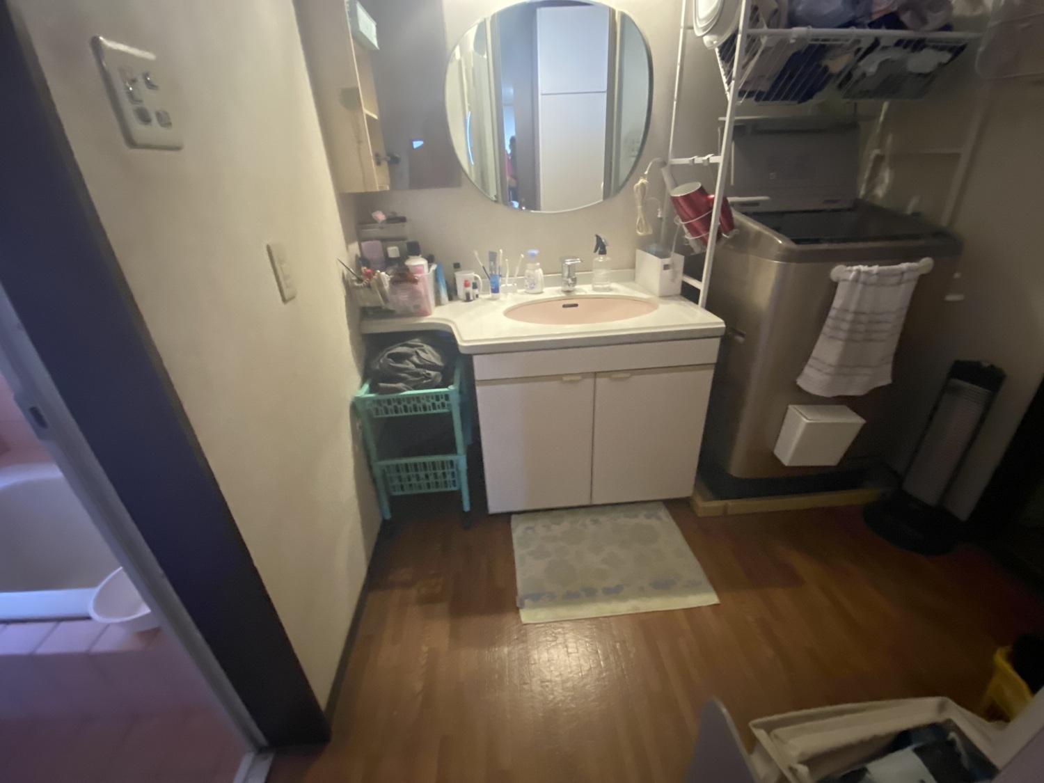 洗面脱衣室は狭く、収納家具を置いたら着替えるスペースがありません。洗面化粧台にも収納が足りませんでした。