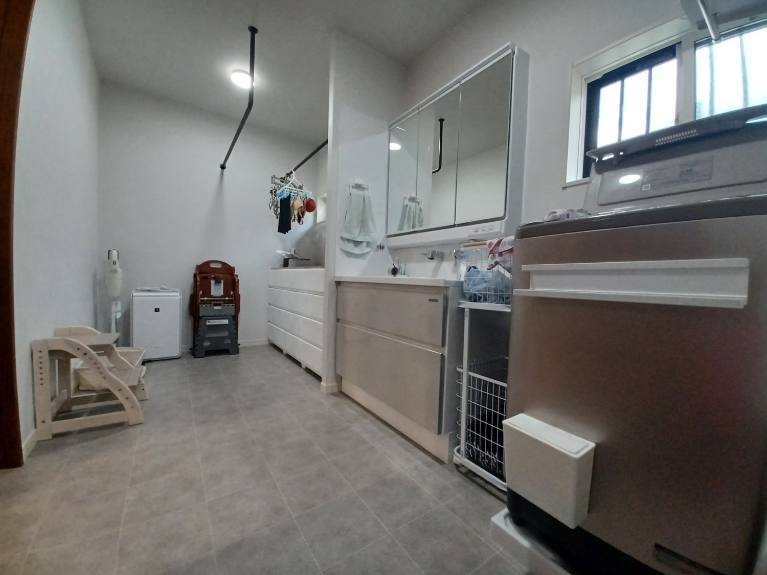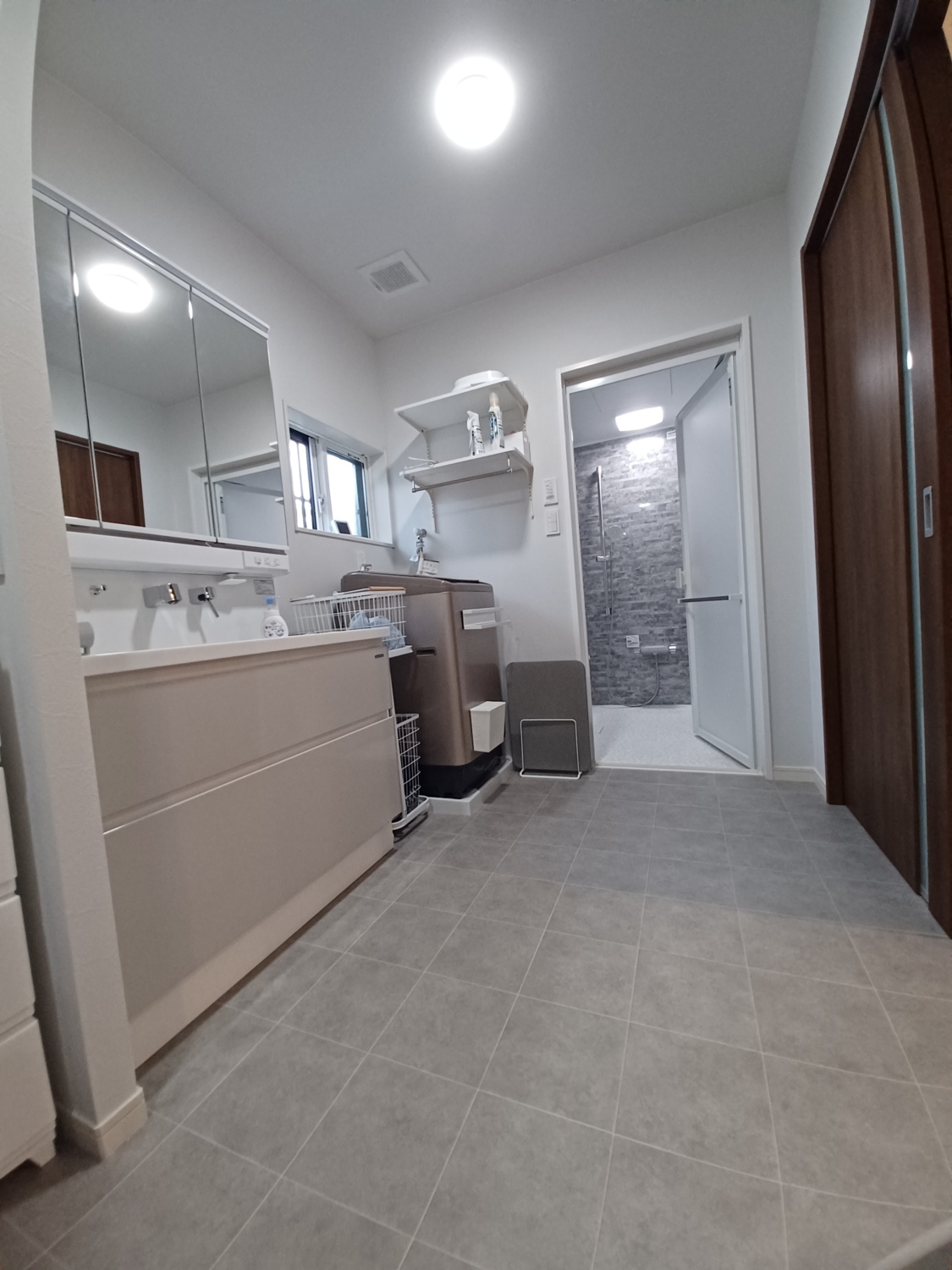 古い浴室をランドリールームに一新し、洗面・洗濯・物干し・収納が一直線につながる“家事ラク動線”を実現しました。幅広の洗面化粧台と大きな鏡は、美容師である奥様のこだわり。脱衣室も広がり、子どもの着替えもゆったり可能に。洗濯から収納まで一部屋で完結する仕組みは、日々の家事効率を大きく向上させます。さらに床は段差なしで、引き戸を採用しバリアフリー化。毎日の家事と育児をスムーズにしながら、家族みんなが快適に使える空間となりました。「こんなに楽になるなんて!」と奥様も感動されています。